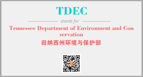 上述内容是“Tennessee Department of Environment and Conservation”作为“TDEC”的缩写,解释为“田纳西州环境与保护部”时的信息,以及英文缩略词TDEC所代表的英文单词,其对应的中文拼音、详细解释以及在英文中的流行度和相关分类、应用领域及应用示例等。