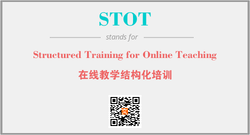 英文缩略词“STOT”经常作为“Structured Training for Online Teaching”的英文缩写来使用,中文表示:“在线教学结构化培训”。本文将详细介绍英文缩写词STOT所代表英文单词,其对应的中文拼音、详细解释以及在英语中的流行度。此外,还有关于缩略词STOT的分类、应用领域及相关应用示例等。
