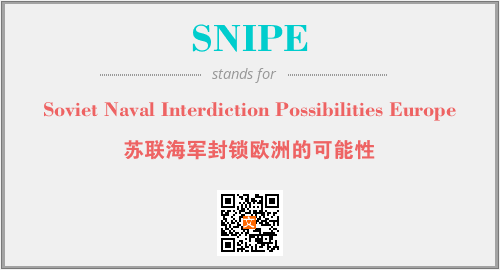 上述内容是“Soviet Naval Interdiction Possibilities Europe”作为“SNIPE”的缩写,解释为“苏联海军封锁欧洲的可能性”时的信息,以及英文缩略词SNIPE所代表的英文单词,其对应的中文拼音、详细解释以及在英文中的流行度和相关分类、应用领域及应用示例等。