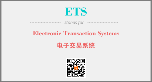 上述内容是“Electronic Transaction Systems”作为“ETS”的缩写,解释为“电子交易系统”时的信息,以及英文缩略词ETS所代表的英文单词,其对应的中文拼音、详细解释以及在英文中的流行度和相关分类、应用领域及应用示例等。