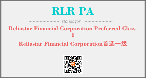 上述内容是“Reliastar Financial Corporation Preferred Class I”作为“RLR PA”的缩写,解释为“Reliastar Financial Corporation首选一级”时的信息,以及英文缩略词RLR PA所代表的英文单词,其对应的中文拼音、详细解释以及在英文中的流行度和相关分类、应用领域及应用示例等。