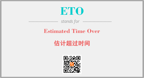 上述内容是“Estimated Time Over”作为“ETO”的缩写,解释为“估计超过时间”时的信息,以及英文缩略词ETO所代表的英文单词,其对应的中文拼音、详细解释以及在英文中的流行度和相关分类、应用领域及应用示例等。