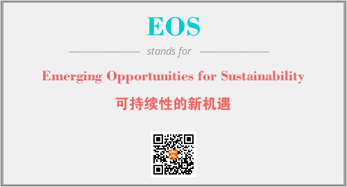 上述内容是“Emerging Opportunities for Sustainability”作为“EOS”的缩写,解释为“可持续性的新机遇”时的信息,以及英文缩略词EOS所代表的英文单词,其对应的中文拼音、详细解释以及在英文中的流行度和相关分类、应用领域及应用示例等。