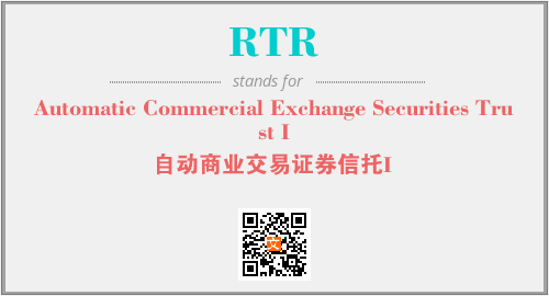 上述内容是“Automatic Commercial Exchange Securities Trust I”作为“RTR”的缩写,解释为“自动商业交易证券信托I”时的信息,以及英文缩略词RTR所代表的英文单词,其对应的中文拼音、详细解释以及在英文中的流行度和相关分类、应用领域及应用示例等。