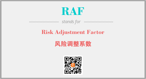 上述内容是“Risk Adjustment Factor”作为“RAF”的缩写,解释为“风险调整系数”时的信息,以及英文缩略词RAF所代表的英文单词,其对应的中文拼音、详细解释以及在英文中的流行度和相关分类、应用领域及应用示例等。