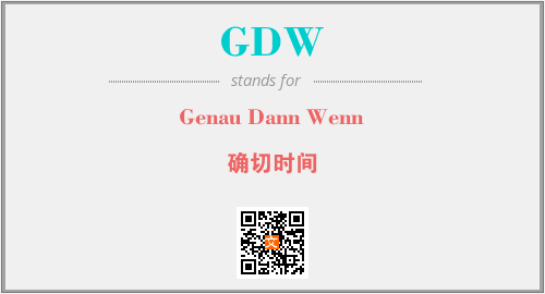 英文缩略词“GDW”经常作为“Genau Dann Wenn”的英文缩写来使用,中文表示:“确切时间”。本文将详细介绍英文缩写词GDW所代表英文单词,其对应的中文拼音、详细解释以及在英语中的流行度。此外,还有关于缩略词GDW的分类、应用领域及相关应用示例等。