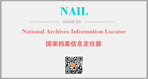 上述内容是“National Archives Information Locator”作为“NAIL”的缩写,解释为“国家档案信息定位器”时的信息,以及英文缩略词NAIL所代表的英文单词,其对应的中文拼音、详细解释以及在英文中的流行度和相关分类、应用领域及应用示例等。