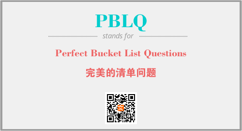 以上为Perfect Bucket List Questions英文缩略词PBLQ的中文解释,以及该英文缩写在英语的流行度、分类和应用领域方面的信息。
