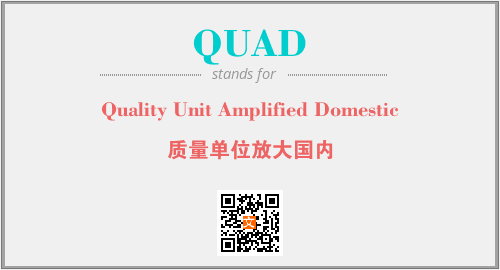 上述内容是“Quality Unit Amplified Domestic”作为“QUAD”的缩写,解释为“质量单位放大国内”时的信息,以及英文缩略词QUAD所代表的英文单词,其对应的中文拼音、详细解释以及在英文中的流行度和相关分类、应用领域及应用示例等。