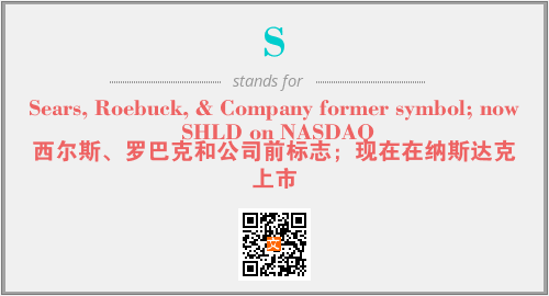 以上为Sears, Roebuck, & Company former symbol; now SHLD on NASDAQ英文缩略词S的中文解释,以及该英文缩写在英语的流行度、分类和应用领域方面的信息。