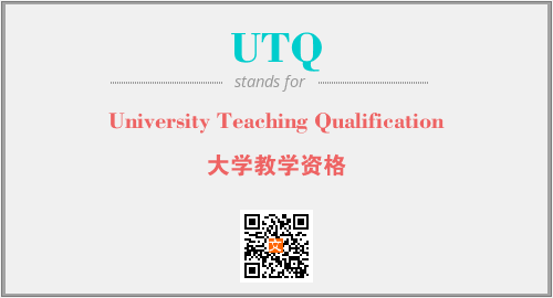 英文缩略词“UTQ”经常作为“University Teaching Qualification”的英文缩写来使用,中文表示:“大学教学资格”。本文将详细介绍英文缩写词UTQ所代表英文单词,其对应的中文拼音、详细解释以及在英语中的流行度。此外,还有关于缩略词UTQ的分类、应用领域及相关应用示例等。