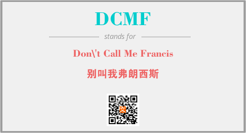 以上为Don\'t Call Me Francis英文缩略词DCMF的中文解释,以及该英文缩写在英语的流行度、分类和应用领域方面的信息。