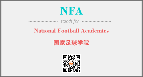 上述内容是“National Football Academies”作为“NFA”的缩写,解释为“国家足球学院”时的信息,以及英文缩略词NFA所代表的英文单词,其对应的中文拼音、详细解释以及在英文中的流行度和相关分类、应用领域及应用示例等。
