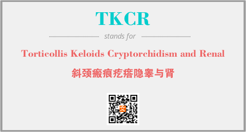 上述内容是“Torticollis Keloids Cryptorchidism and Renal”作为“TKCR”的缩写,解释为“斜颈瘢痕疙瘩隐睾与肾”时的信息,以及英文缩略词TKCR所代表的英文单词,其对应的中文拼音、详细解释以及在英文中的流行度和相关分类、应用领域及应用示例等。