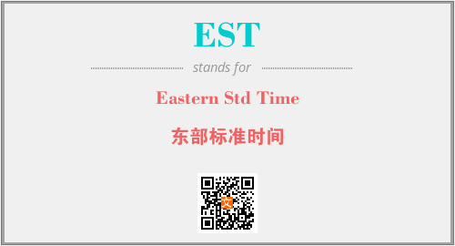英文缩略词“EST”经常作为“Eastern Std Time”的英文缩写来使用,中文表示:“东部标准时间”。本文将详细介绍英文缩写词EST所代表英文单词,其对应的中文拼音、详细解释以及在英语中的流行度。此外,还有关于缩略词EST的分类、应用领域及相关应用示例等。