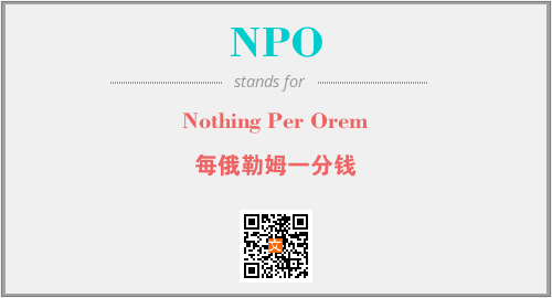 上述内容是“Nothing Per Orem”作为“NPO”的缩写,解释为“每俄勒姆一分钱”时的信息,以及英文缩略词NPO所代表的英文单词,其对应的中文拼音、详细解释以及在英文中的流行度和相关分类、应用领域及应用示例等。