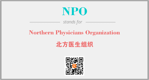 上述内容是“Northern Physicians Organization”作为“NPO”的缩写,解释为“北方医生组织”时的信息,以及英文缩略词NPO所代表的英文单词,其对应的中文拼音、详细解释以及在英文中的流行度和相关分类、应用领域及应用示例等。