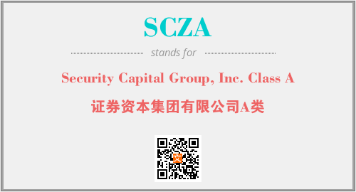 上述内容是“Security Capital Group, Inc. Class A”作为“SCZA”的缩写,解释为“证券资本集团有限公司A类”时的信息,以及英文缩略词SCZA所代表的英文单词,其对应的中文拼音、详细解释以及在英文中的流行度和相关分类、应用领域及应用示例等。