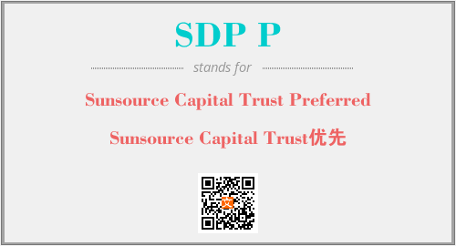 英文缩略词“SDP P”经常作为“Sunsource Capital Trust Preferred”的英文缩写来使用,中文表示:“Sunsource Capital Trust优先”。本文将详细介绍英文缩写词SDP P所代表英文单词,其对应的中文拼音、详细解释以及在英语中的流行度。此外,还有关于缩略词SDP P的分类、应用领域及相关应用示例等。