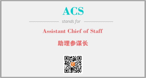 英文缩略词“ACS”经常作为“Assistant Chief of Staff”的英文缩写来使用,中文表示:“助理参谋长”。本文将详细介绍英文缩写词ACS所代表英文单词,其对应的中文拼音、详细解释以及在英语中的流行度。此外,还有关于缩略词ACS的分类、应用领域及相关应用示例等。