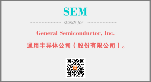 上述内容是“General Semiconductor, Inc.”作为“SEM”的缩写,解释为“通用半导体公司(股份有限公司)。”时的信息,以及英文缩略词SEM所代表的英文单词,其对应的中文拼音、详细解释以及在英文中的流行度和相关分类、应用领域及应用示例等。
