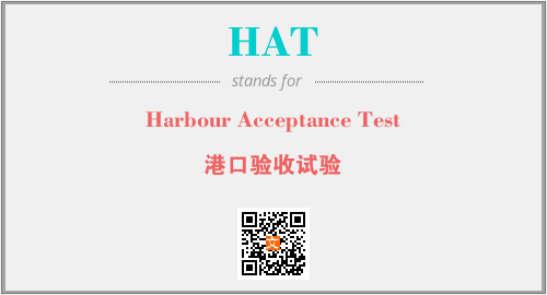英文缩略词“HAT”经常作为“Harbour Acceptance Test”的英文缩写来使用,中文表示:“港口验收试验”。本文将详细介绍英文缩写词HAT所代表英文单词,其对应的中文拼音、详细解释以及在英语中的流行度。此外,还有关于缩略词HAT的分类、应用领域及相关应用示例等。