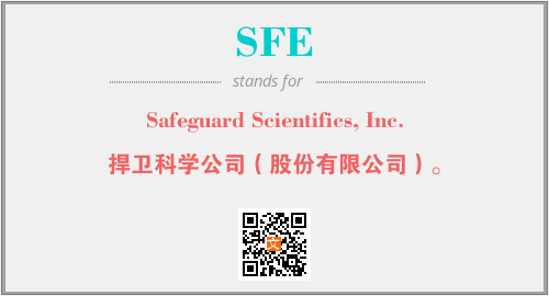 上述内容是“Safeguard Scientifics, Inc.”作为“SFE”的缩写,解释为“捍卫科学公司(股份有限公司)。”时的信息,以及英文缩略词SFE所代表的英文单词,其对应的中文拼音、详细解释以及在英文中的流行度和相关分类、应用领域及应用示例等。