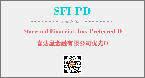 英文缩略词“SFI PD”经常作为“Starwood Financial, Inc. Preferred D”的英文缩写来使用,中文表示:“喜达屋金融有限公司优先D”。本文将详细介绍英文缩写词SFI PD所代表英文单词,其对应的中文拼音、详细解释以及在英语中的流行度。此外,还有关于缩略词SFI PD的分类、应用领域及相关应用示例等。