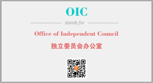 上述内容是“Office of Independent Council”作为“OIC”的缩写,解释为“独立委员会办公室”时的信息,以及英文缩略词OIC所代表的英文单词,其对应的中文拼音、详细解释以及在英文中的流行度和相关分类、应用领域及应用示例等。