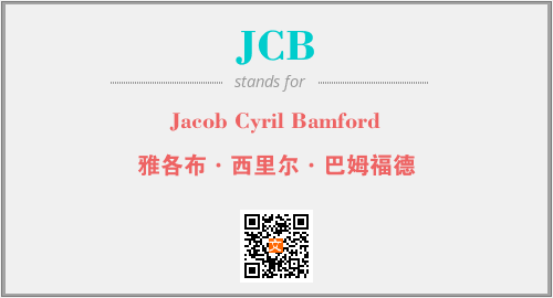 上述内容是“Jacob Cyril Bamford”作为“JCB”的缩写,解释为“雅各布·西里尔·巴姆福德”时的信息,以及英文缩略词JCB所代表的英文单词,其对应的中文拼音、详细解释以及在英文中的流行度和相关分类、应用领域及应用示例等。