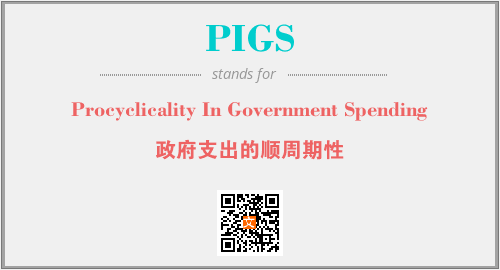 上述内容是“Procyclicality In Government Spending”作为“PIGS”的缩写,解释为“政府支出的顺周期性”时的信息,以及英文缩略词PIGS所代表的英文单词,其对应的中文拼音、详细解释以及在英文中的流行度和相关分类、应用领域及应用示例等。