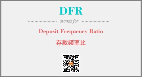 上述内容是“Deposit Frequency Ratio”作为“DFR”的缩写,解释为“存款频率比”时的信息,以及英文缩略词DFR所代表的英文单词,其对应的中文拼音、详细解释以及在英文中的流行度和相关分类、应用领域及应用示例等。