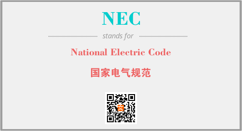 英文缩略词“NEC”经常作为“National Electric Code”的英文缩写来使用,中文表示:“国家电气规范”。本文将详细介绍英文缩写词NEC所代表英文单词,其对应的中文拼音、详细解释以及在英语中的流行度。此外,还有关于缩略词NEC的分类、应用领域及相关应用示例等。