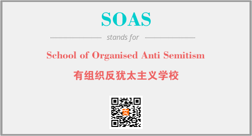 英文缩略词“SOAS”经常作为“School of Organised Anti Semitism”的英文缩写来使用,中文表示:“有组织反犹太主义学校”。本文将详细介绍英文缩写词SOAS所代表英文单词,其对应的中文拼音、详细解释以及在英语中的流行度。此外,还有关于缩略词SOAS的分类、应用领域及相关应用示例等。