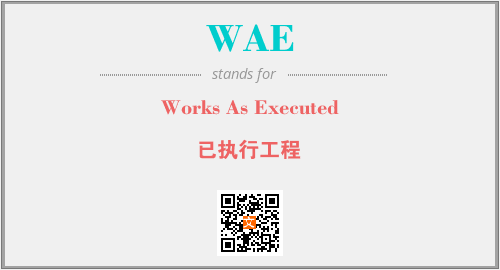 上述内容是“Works As Executed”作为“WAE”的缩写,解释为“已执行工程”时的信息,以及英文缩略词WAE所代表的英文单词,其对应的中文拼音、详细解释以及在英文中的流行度和相关分类、应用领域及应用示例等。