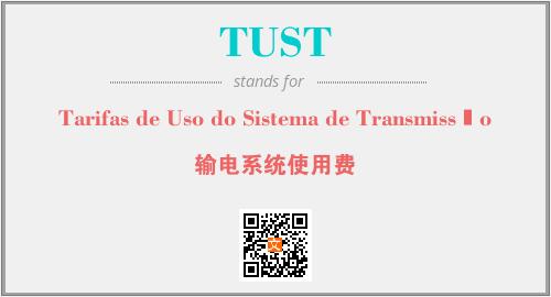 上述内容是“Tarifas de Uso do Sistema de Transmissão”作为“TUST”的缩写,解释为“输电系统使用费”时的信息,以及英文缩略词TUST所代表的英文单词,其对应的中文拼音、详细解释以及在英文中的流行度和相关分类、应用领域及应用示例等。