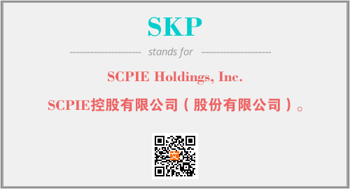 上述内容是“SCPIE Holdings, Inc.”作为“SKP”的缩写,解释为“SCPIE控股有限公司(股份有限公司)。”时的信息,以及英文缩略词SKP所代表的英文单词,其对应的中文拼音、详细解释以及在英文中的流行度和相关分类、应用领域及应用示例等。