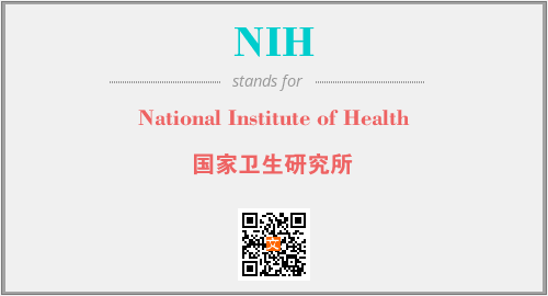 上述内容是“National Institute of Health”作为“NIH”的缩写,解释为“国家卫生研究所”时的信息,以及英文缩略词NIH所代表的英文单词,其对应的中文拼音、详细解释以及在英文中的流行度和相关分类、应用领域及应用示例等。