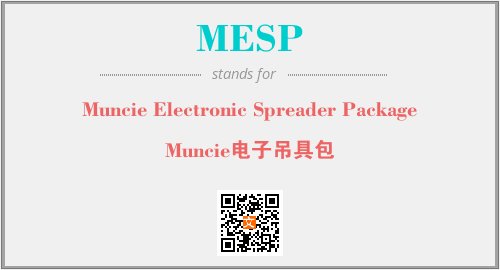英文缩略词“MESP”经常作为“Muncie Electronic Spreader Package”的英文缩写来使用,中文表示:“Muncie电子吊具包”。本文将详细介绍英文缩写词MESP所代表英文单词,其对应的中文拼音、详细解释以及在英语中的流行度。此外,还有关于缩略词MESP的分类、应用领域及相关应用示例等。