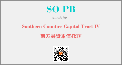 上述内容是“Southern Counties Capital Trust IV”作为“SO PB”的缩写,解释为“南方县资本信托IV”时的信息,以及英文缩略词SO PB所代表的英文单词,其对应的中文拼音、详细解释以及在英文中的流行度和相关分类、应用领域及应用示例等。