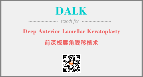 英文缩略词“DALK”经常作为“Deep Anterior Lamellar Keratoplasty”的英文缩写来使用,中文表示:“前深板层角膜移植术”。本文将详细介绍英文缩写词DALK所代表英文单词,其对应的中文拼音、详细解释以及在英语中的流行度。此外,还有关于缩略词DALK的分类、应用领域及相关应用示例等。