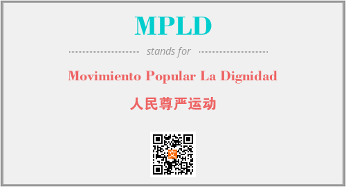 上述内容是“Movimiento Popular La Dignidad”作为“MPLD”的缩写,解释为“人民尊严运动”时的信息,以及英文缩略词MPLD所代表的英文单词,其对应的中文拼音、详细解释以及在英文中的流行度和相关分类、应用领域及应用示例等。
