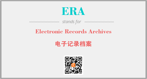 上述内容是“Electronic Records Archives”作为“ERA”的缩写,解释为“电子记录档案”时的信息,以及英文缩略词ERA所代表的英文单词,其对应的中文拼音、详细解释以及在英文中的流行度和相关分类、应用领域及应用示例等。