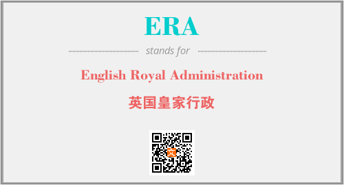 上述内容是“English Royal Administration”作为“ERA”的缩写,解释为“英国皇家行政”时的信息,以及英文缩略词ERA所代表的英文单词,其对应的中文拼音、详细解释以及在英文中的流行度和相关分类、应用领域及应用示例等。