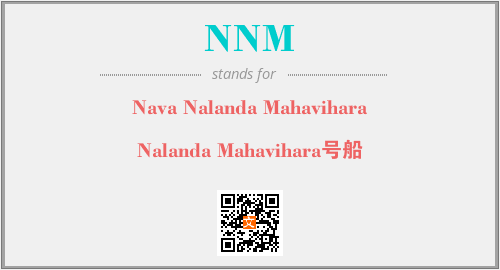 英文缩略词“NNM”经常作为“Nava Nalanda Mahavihara”的英文缩写来使用,中文表示:“Nalanda Mahavihara号船”。本文将详细介绍英文缩写词NNM所代表英文单词,其对应的中文拼音、详细解释以及在英语中的流行度。此外,还有关于缩略词NNM的分类、应用领域及相关应用示例等。