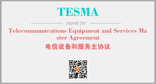 上述内容是“Telecommunications Equipment and Services Master Agreement”作为“TESMA”的缩写,解释为“电信设备和服务主协议”时的信息,以及英文缩略词TESMA所代表的英文单词,其对应的中文拼音、详细解释以及在英文中的流行度和相关分类、应用领域及应用示例等。