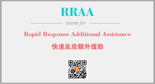 以上为Rapid Response Additional Assistance英文缩略词RRAA的中文解释,以及该英文缩写在英语的流行度、分类和应用领域方面的信息。