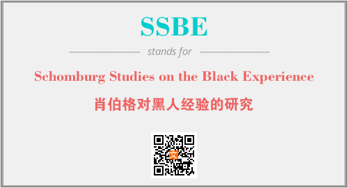上述内容是“Schomburg Studies on the Black Experience”作为“SSBE”的缩写,解释为“肖伯格对黑人经验的研究”时的信息,以及英文缩略词SSBE所代表的英文单词,其对应的中文拼音、详细解释以及在英文中的流行度和相关分类、应用领域及应用示例等。