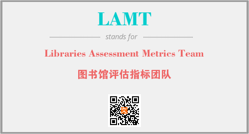 上述内容是“Libraries Assessment Metrics Team”作为“LAMT”的缩写,解释为“图书馆评估指标团队”时的信息,以及英文缩略词LAMT所代表的英文单词,其对应的中文拼音、详细解释以及在英文中的流行度和相关分类、应用领域及应用示例等。
