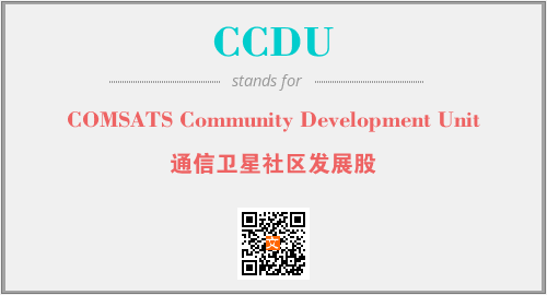 英文缩略词“CCDU”经常作为“COMSATS Community Development Unit”的英文缩写来使用,中文表示:“通信卫星社区发展股”。本文将详细介绍英文缩写词CCDU所代表英文单词,其对应的中文拼音、详细解释以及在英语中的流行度。此外,还有关于缩略词CCDU的分类、应用领域及相关应用示例等。